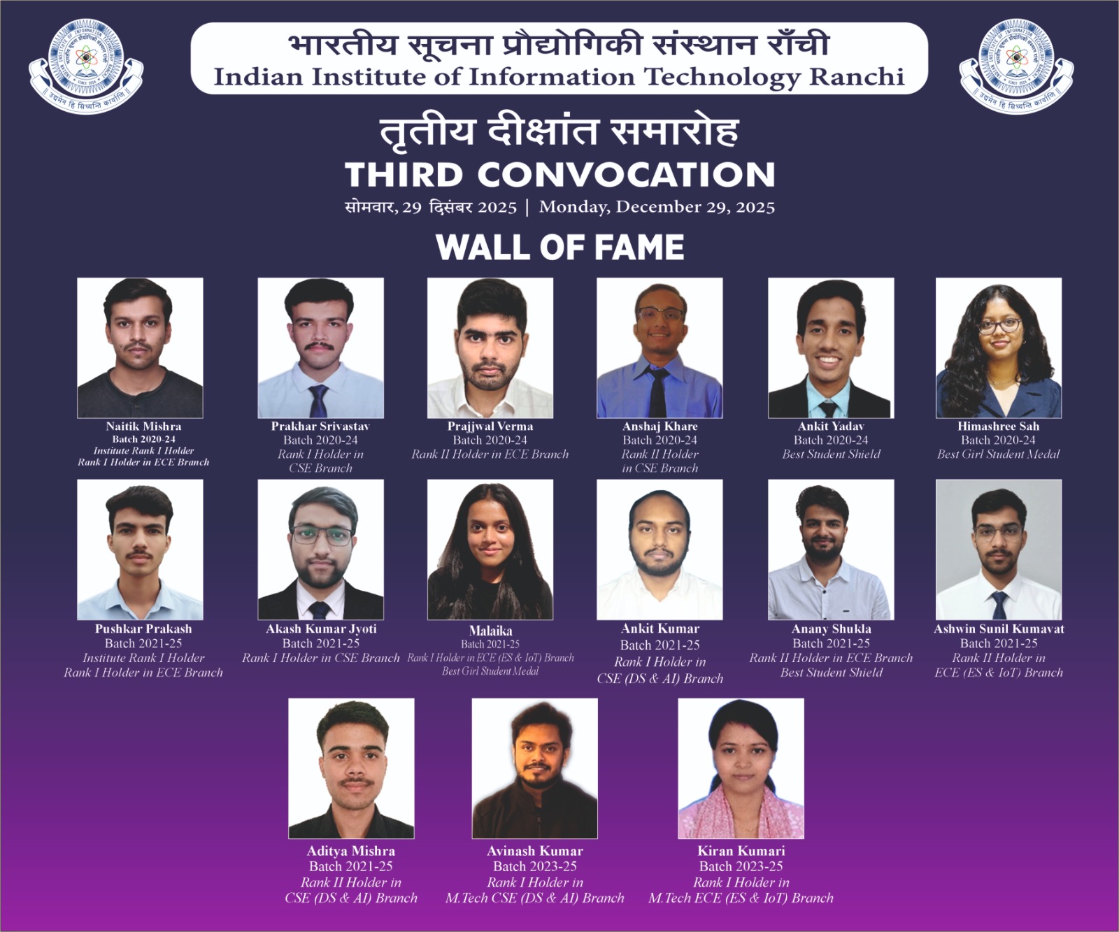 Welcome to Indian Institute of Information Technology Ranchi. I would like to extend a warm welcome to all students, faculty, staff, and stakeholders. At IIIT Ranchi, we are committed to foster a culture of academic excellence, innovation, and inclusivity. Our institute aims …